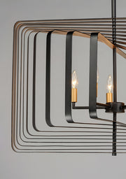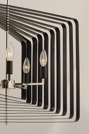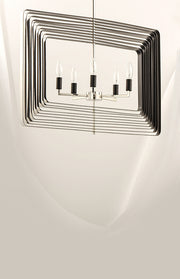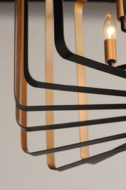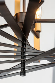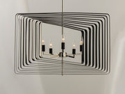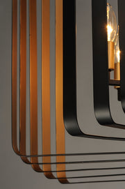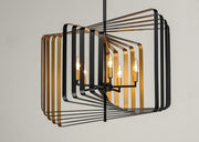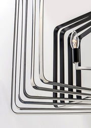 A fun and unique design the features numerous concentric rings finished Black or Polished Nickel on the outside and Gold or Black on the inside that pivot from a center point. The rings can be configured from completely flat to full repeated symmetry and anything in between to allow flexibility in the design.