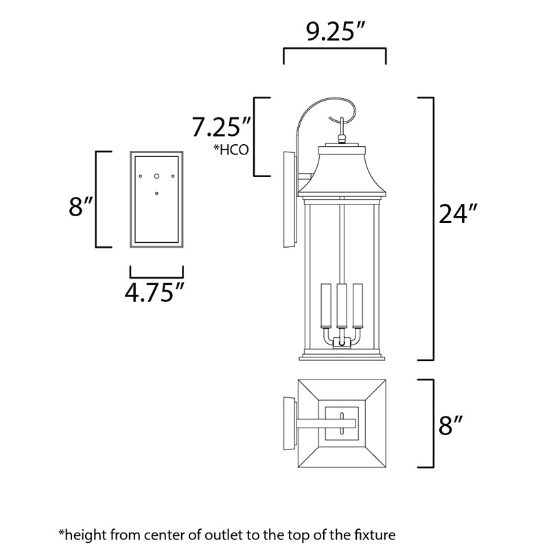 Maxim 30024 Vicksburg 3-lt 8" Outdoor Wall Sconce