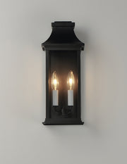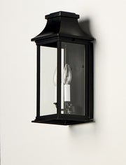 Inspired by classic coach gas lanterns, the Vicksburg collection features die-cast aluminum construction finished in Black with Clear glass. The candle sleeves are done in a contrasting off-white finish to add dimension to the lantern. Available in numerous sizes and configurations including a handsome pocket wall.