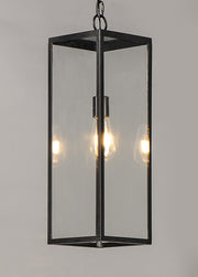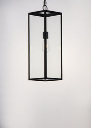 An elongated rectangular shaped design that is both minimalist and industrial. Die cast frames of Dark Bronze support Clear glass panels that provide an unobstructed view of the lantern's interior. Customize with your choice of lamps from vintage to tubular.