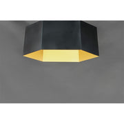 A series of hexagonal metal shades are slightly tapered to create a gentle arc when suspended together. The dramatic combination of Black with Gold interior adds flair to this unique and bold design. Ample illumination is provided by high power integrated LED and softened by acrylic diffusers recessed into each compartment.