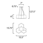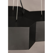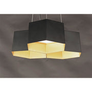 A series of hexagonal metal shades are slightly tapered to create a gentle arc when suspended together. The dramatic combination of Black with Gold interior adds flair to this unique and bold design. Ample illumination is provided by high power integrated LED and softened by acrylic diffusers recessed into each compartment.