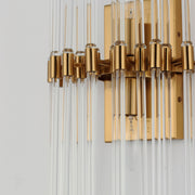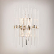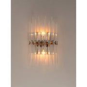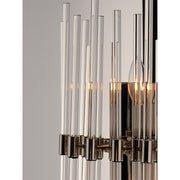 The composition of Clear glass rods are elegantly supported by thin radial arms of different length in a collection that is truly Divine. Finished in Polished Nickel, the simplicity of this design delivers a crisp lighting fixture that works in a multitude of interior genres from contemporary to traditional.