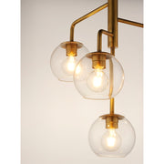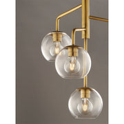 Vessels of heavy weight Clear glass are supported on frames of solid brass finished in a hand rubbed Natural Aged Brass finish. A versatile collection of up and down configurations which can be directly attached to the canopy or extended down by the rods supplied.