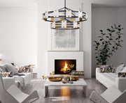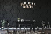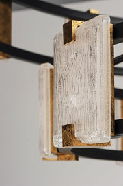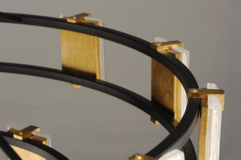 Piastra style glass diffuses integrated LED to shimmer radiantly. Suspended on a Black frame with Gold Leaf accents, this perfect blend of contemporary and traditional design adds glamour to a broad spectrum of design aesthetics.