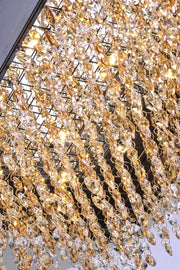 A sea of Scotch Crystal strands suspend from within drums of steel that are finished in a rich Bronze. Hidden inside the drums is a powerful dimmable LED source, which has the crystals dancing In the night without any glare in your eyes.