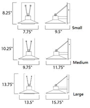 - Small: 7.75"W x 8.25"H x 9.5"Ext