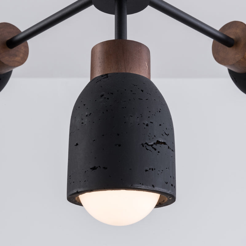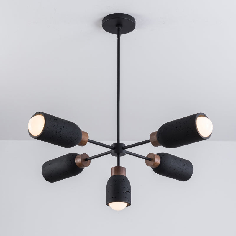 A tribute of natural materials, this collection features carved stone shades in your choice of Travertine or volcanic Lava Rock, paired with coordinating lathed wood bases.