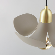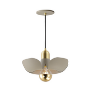 Incurved metal petals of Storm Grey or White finish with Satin Brass caps make oversized biophilic light fixtures. Available as wall sconces or pendants, the various configurations provide playful forms both nostalgic or youthful. Pair with a white G25 lamp or reflector lamp to complete the look.