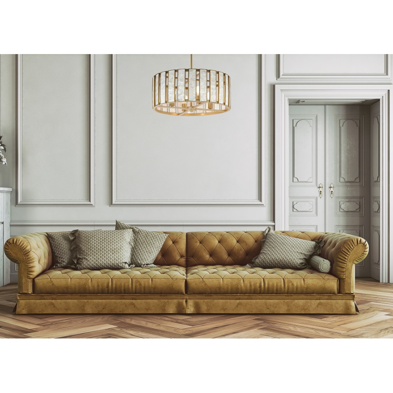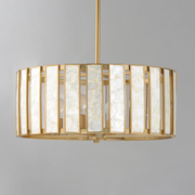 Classic in form and evoking the sea, laminae of Capiz shell are framed in paneled drum shapes. The Natural Aged Brass finish refines the coastal elements and complements the warm glow from behind the translucent panels. Available in 3 configurations of pendants and a tall ADA-compliant wall sconce, the collection offers a sophisticated approach at coastal design.
