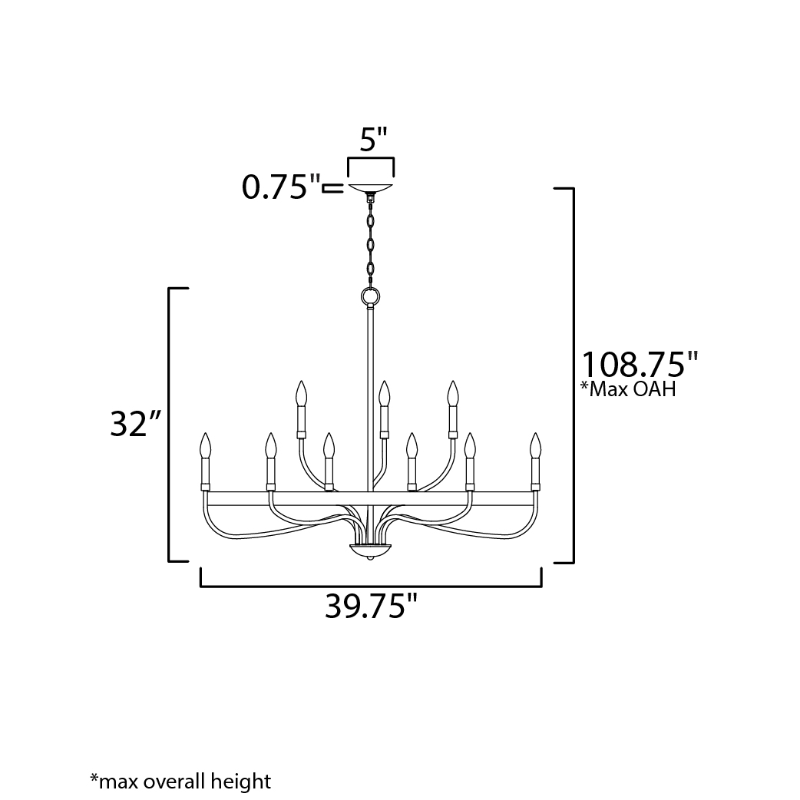 - Max Overall Height: 108.75"