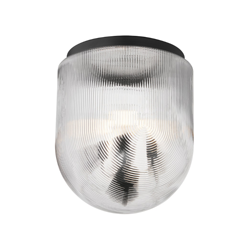 Featuring a concentric, semicircular ribbed glass pattern, this collection offers a blend of familiar design with contemporary flair. The deeply textured glass refracts light beautifully, diffusing glare while delivering ample functional illumination.