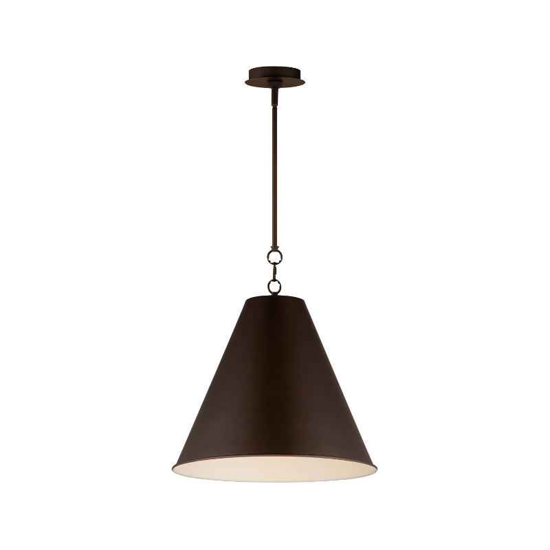 The iconic metal spun cone shade offers a transitional pendant design great as multiples over a kitchen island or dining table.