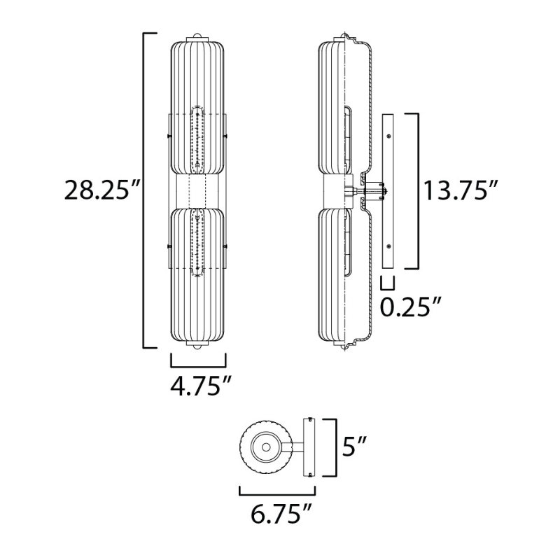 - Back Plate: 5" W x 13.75" H