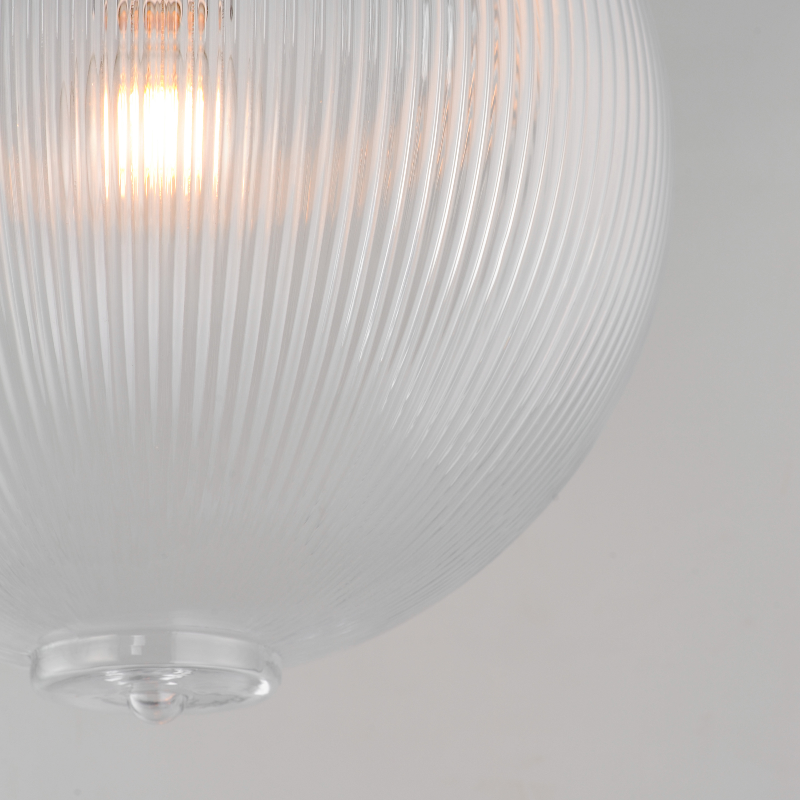 Nostalgic spherical glass volumes with a ribbed pattern and a dipped flat bottom, this collection offers a retro and eclectic choice for pendants and sconces.