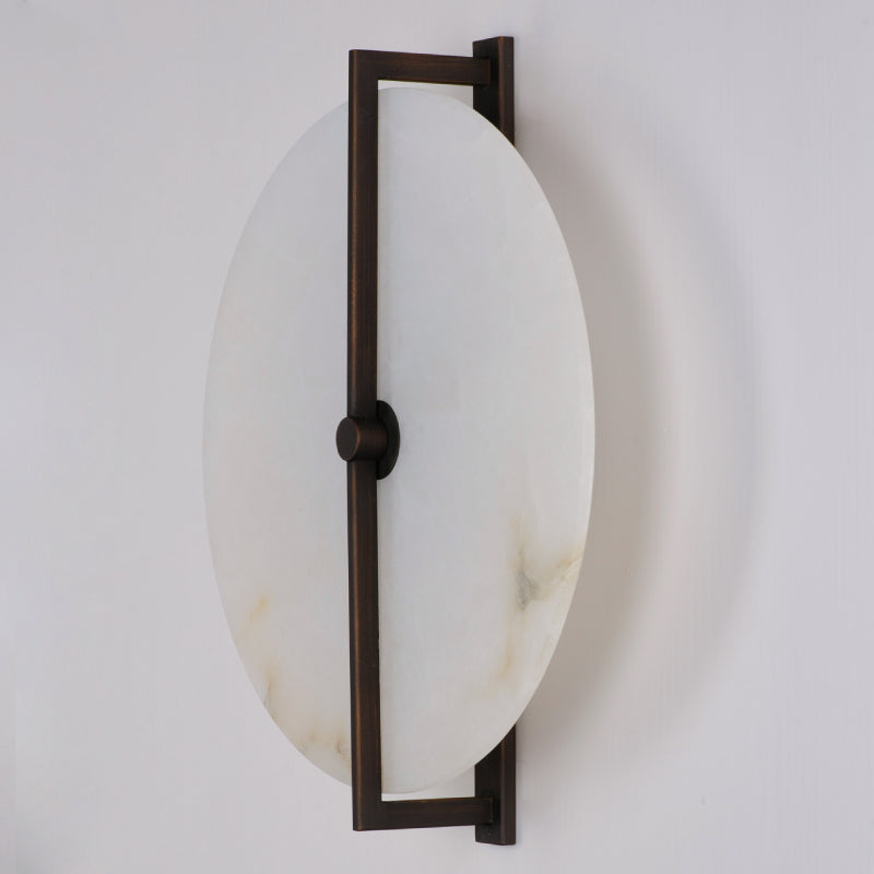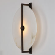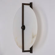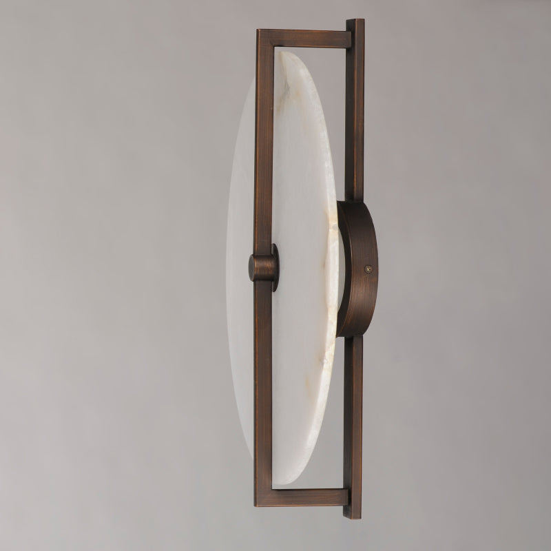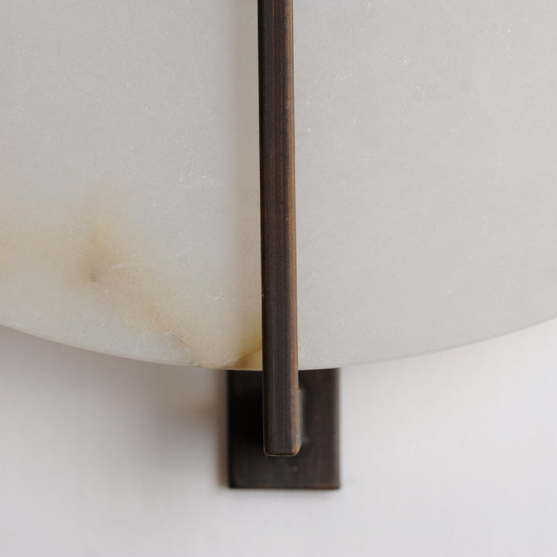 Modern in execution, yet representative of the classic inverted bowl pendants, the Quarry collection features natural Spanish alabaster in an iron frame finished in Darkened Bronze. An inverted bowl form is created using the alabaster's straight line and the empty space below it. Slim housings of LED direct light both up at the alabaster to highlight the stone's character and another direct light downward for functional use below.