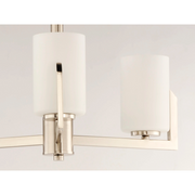 Inspired by the Modernist architect Edward Dart, this collection features straight line frames finished in Satin Brass, Satin Nickel, or Matte Black that support Satin White glass cylinders for a clean and modern look. The frames' ends turn up before the glass in sharp mitered angles emphasizing a minimalist geometry popular in Modernist work.