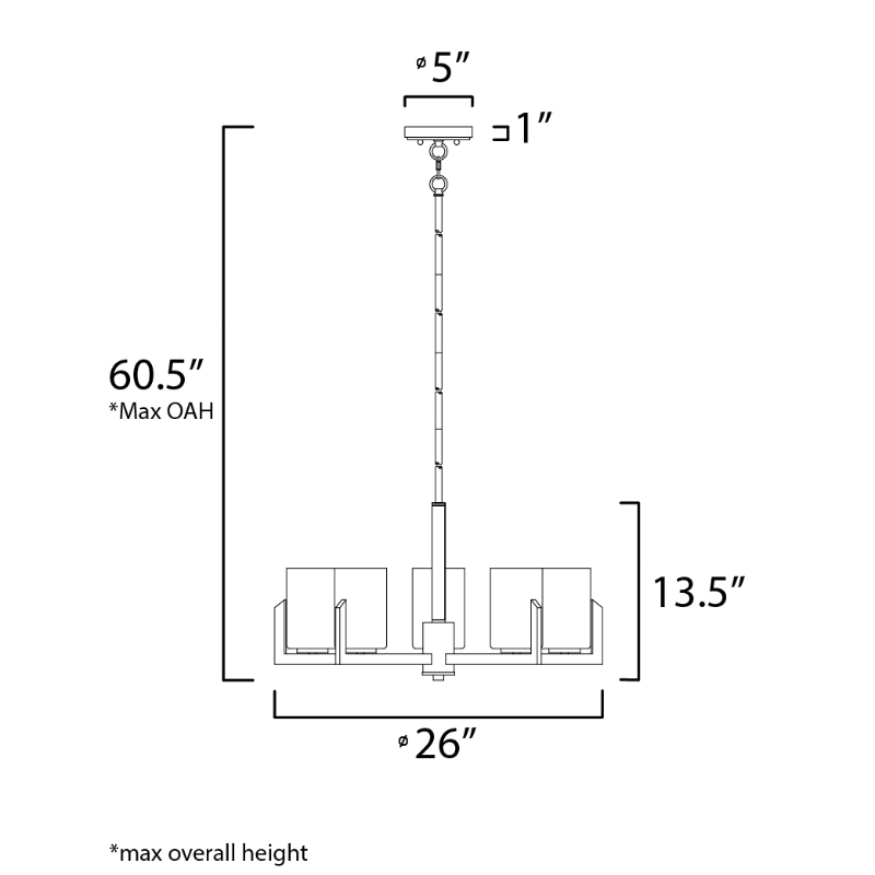 - 5 x 60W E26 Medium Base Incandescent (Not Included)