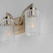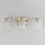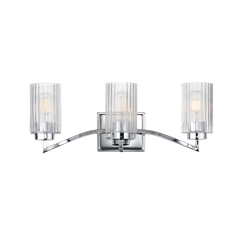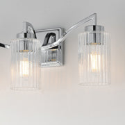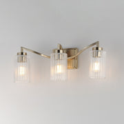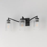 Clear Ribbed glass cylinders are supported on gracefully sweeping frames. The glass pattern helps to diffuse the light source while adding texture and style to the design.