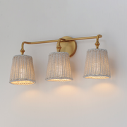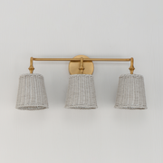 Featuring wicker shades made of synthetic rattan, this bath vanity lighting collection brings an elegant coastal flair to your space. Choose from a Natural wicker finish with a Dark Bronze frame accented by brushed golden highlights, or a Weathered White rattan with a Natural Aged Brass frame for a timelessly elegant composition.