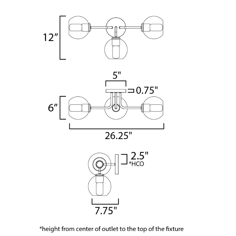 - 3 x 60W E26 Medium Base Incandescent (Not Included)