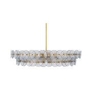 Overlapping handmade pressed glass disks mounted on metal frames inspired by Mid-Century Italian design, this collection offers a blend of vintage charm and modern elegance. Choose from Vintage Green glass on a Weathered Brass frame, or Amber glass on a Gunmetal frame, or Textured Clear glass on either frame.