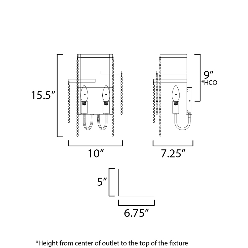 - 2 x 60W E12 Candelabra Base Incandescent (Not Included)