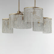 Cascading strands of square Weathered Wood beads are suspended on an offset spiraling frame finished in hand-applied Golden Silver leaf. The craftsmanship of the design is complimented by the soft glow of light within adding ambience to any space.
