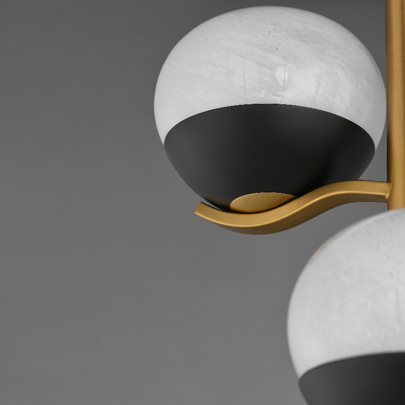 Notably stylish and unique, the Lucerne collection features oblong glossy glass globes with a swirling Marble pattern that exudes sophistication. The distinctive rectangular arms gracefully curve downward, seamlessly blending robust metal fabrication with precision and fluid elegance.
