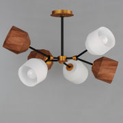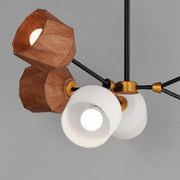 This fashionable modern chandelier combines solid wood shades with warm bronze and brass tones. Posing with arms akimbo, a combination of walnut stained oak and Satin White glass shades creates a transitional statement in mixed materials while also providing pleasant glare-free lighting. A coordinating swing arm wall sconce extends horizontally using an attractive and sturdy arm structure. This collection blends with a variety of styles thanks to its two-tone Dark Bronze and Antique Brass finish and the natural tones of the wooden shades. LED lamps are conveniently included with the fixtures as an all-inclusive package, making them energy efficient as well.
