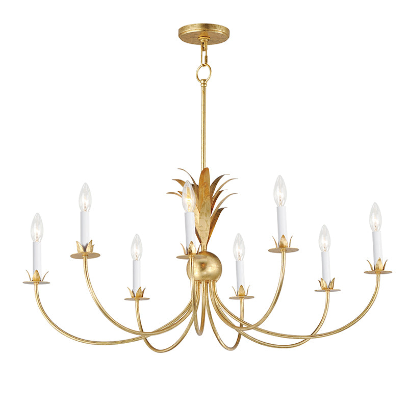 Effortlessly elegant, the biophilic details that adorn this classic chandelier transports you to an oasis indoors. The design, whether brilliantly gilt in Gold Leaf or hand painted in a dramatically textural Anthracite finish, exudes a timeless quality that is sure to please.