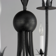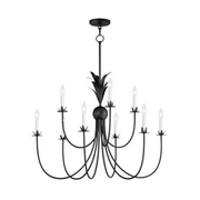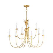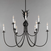 Effortlessly elegant, the biophilic details that adorn this classic chandelier transports you to an oasis indoors. The design, whether brilliantly gilt in Gold Leaf or hand painted in a dramatically textural Anthracite finish, exudes a timeless quality that is sure to please. The graceful form of these fixtures is constructed of slender metal tubes that sprout from a spherical collector at the center and Off-White metal candle covers that are designed to last.