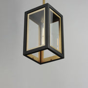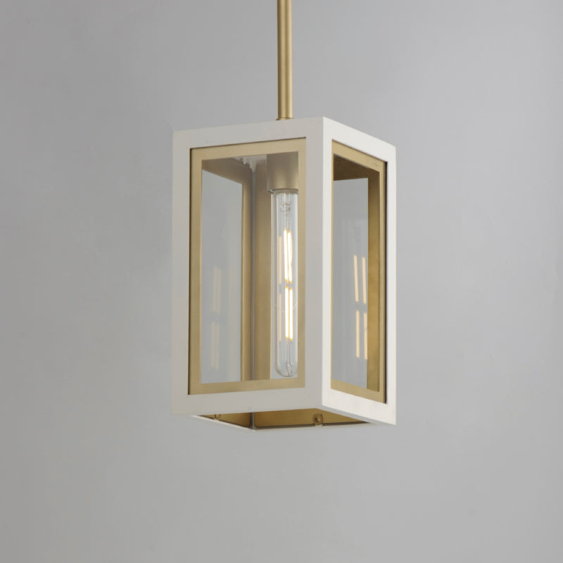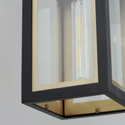 Two-tone frames of Black or White with internal Gold frames provides a neoclassical approach to the squared coach lantern. The sconces jut out from the wall on well-defined trusses that add a contemporary element. Delivering a classic design that suits most exteriors, this collection adds interest in the interior contrasting frame of Gold that secures clear glass panes to diffuse the lamp within.