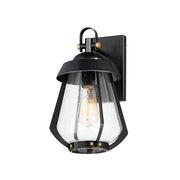A nod to the nautical, the Marin outdoor sconces feature a two-tone frame of Black with Antique Brass details. Within the frame a pear shaped Clear Seeded glass shields a medium base lamp from the elements.