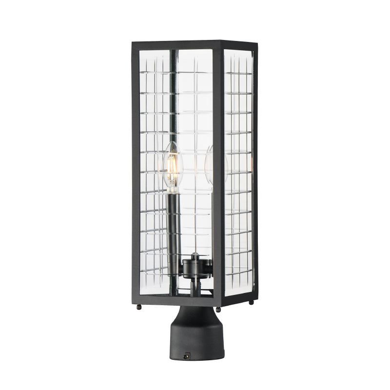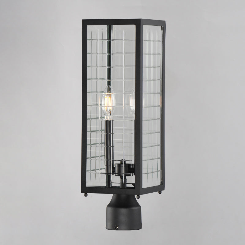 A simple square-framed lantern features deep etched squares on Clear glass, creating a captivating array of refracted light.