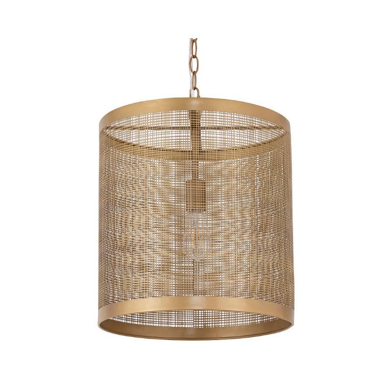 A crosshatching etched pattern on metal shades finished in Gold or Matte Black powder coated finishes.