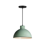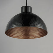 Hammered metal dome shades are painted in glossy enamel paints that welcomes a nautical look.