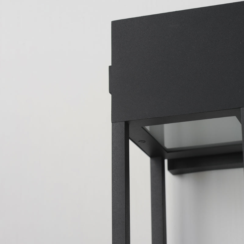 A study in simplicity, this geometric cage lantern features an open, glass-free design with two rectilinear strands that support the top hood.