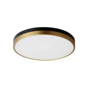 A trendy two-tone Black and Gold low-profile flush mount to coordinate with the ever popular two-tone product designs throughout your project. The slim profile and stylish finish make this LED flush mount a dapper choice to pair with other Black and Gold furniture, furnishings, and plumbing options available. Available in two diameters 12" and 16" that house powerful LED light sources.