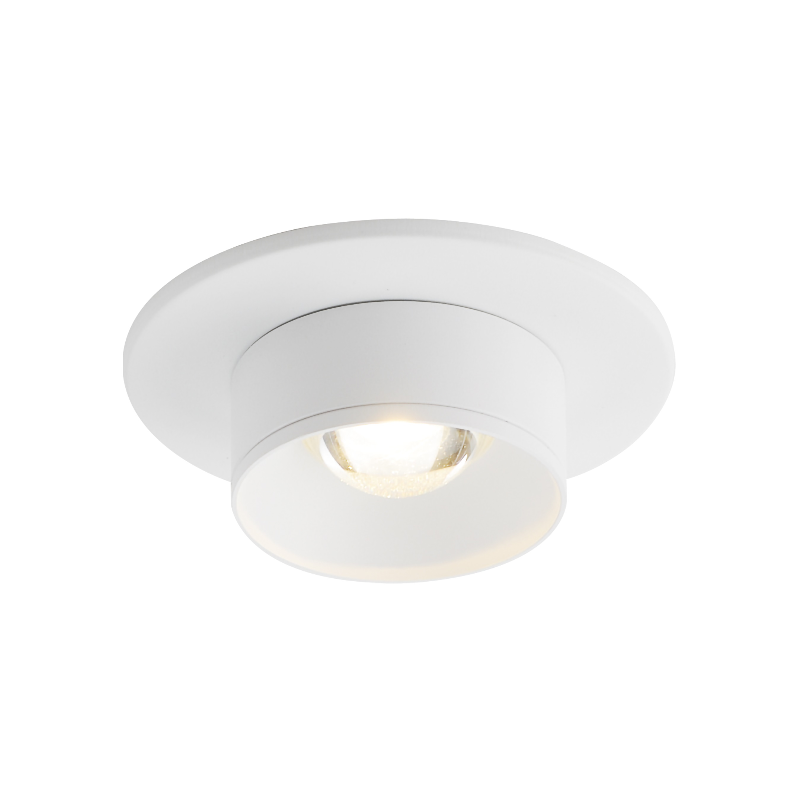 Extremely small in profile, the Caldera extends less than 2" from the ceiling surface with a recessed optical lens housed in the center of an angled edge. The result is a bright light source with wide optics and minimal glare. With a diameter of 3.25 inches, the flush mount includes a mud-in plate for architectural finishing as well as a cover plate for simpler installations that do not require additional preparation.
