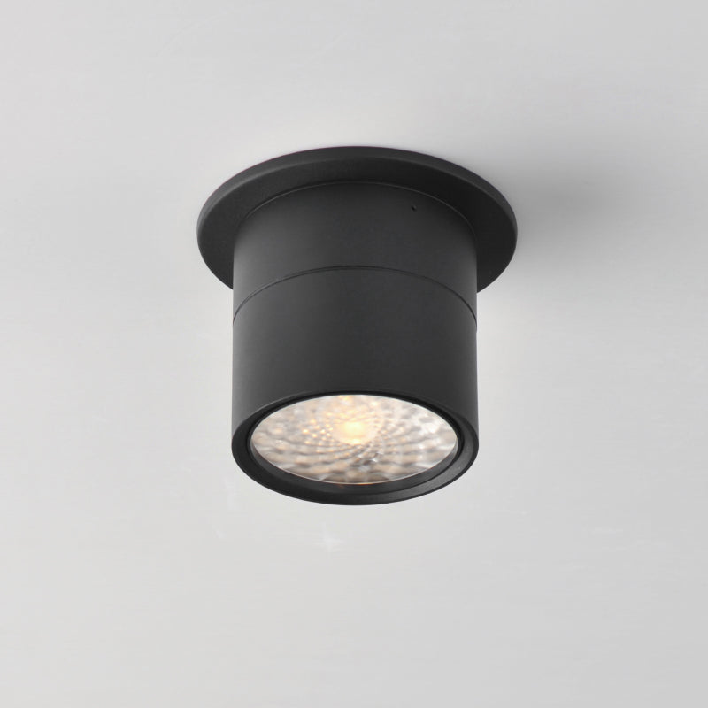 Inconspicuously recessed within its cylindrical house, an extending arm transforms this surface mounted light fixture into an adjustable spotlight. Simply unthread the top half along the seam to extend the frame length and swing the fixture into position. Twist the lens on the face of this fixture to adjust its beam angle spread.