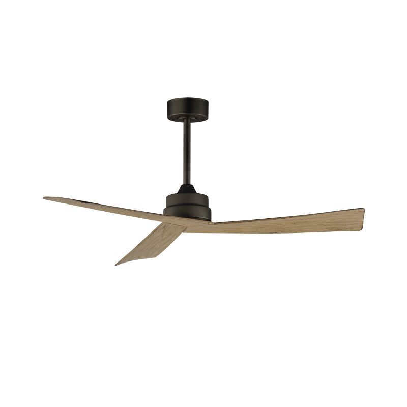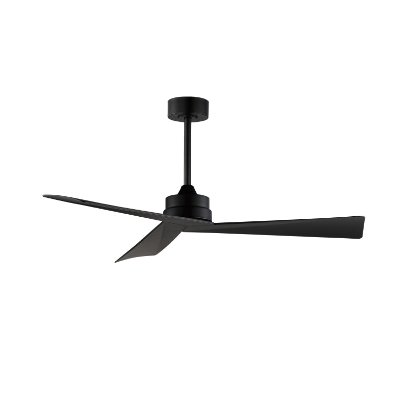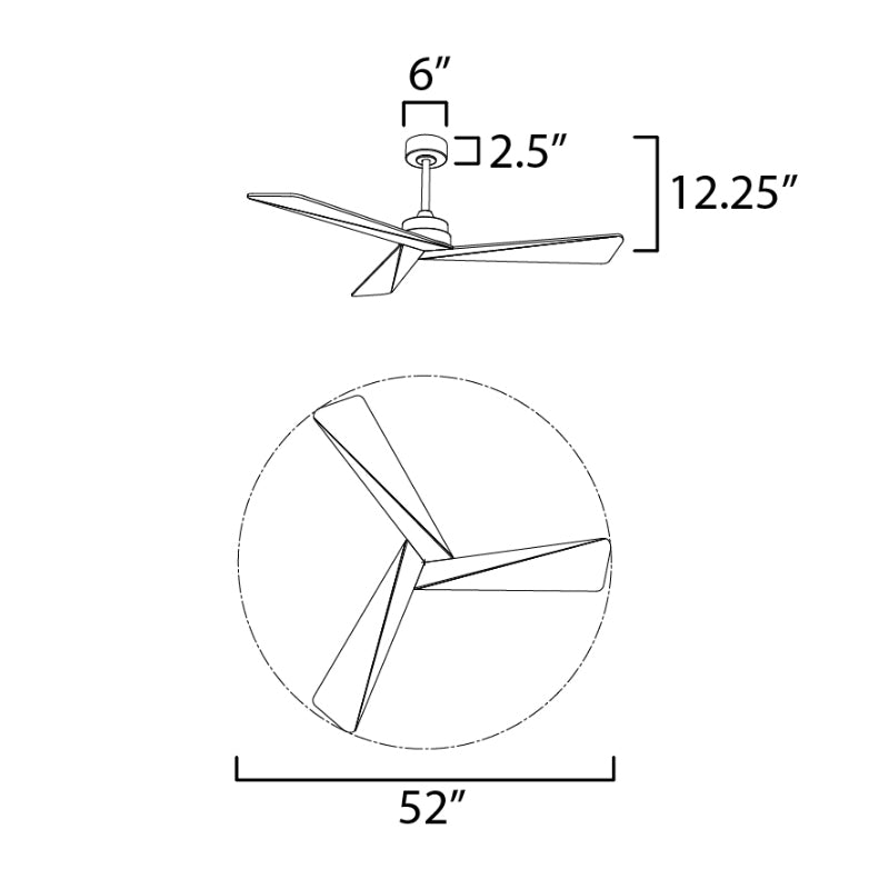 Sharp angular blades come together at the center housing of this fan for a modern, yet transitional look.