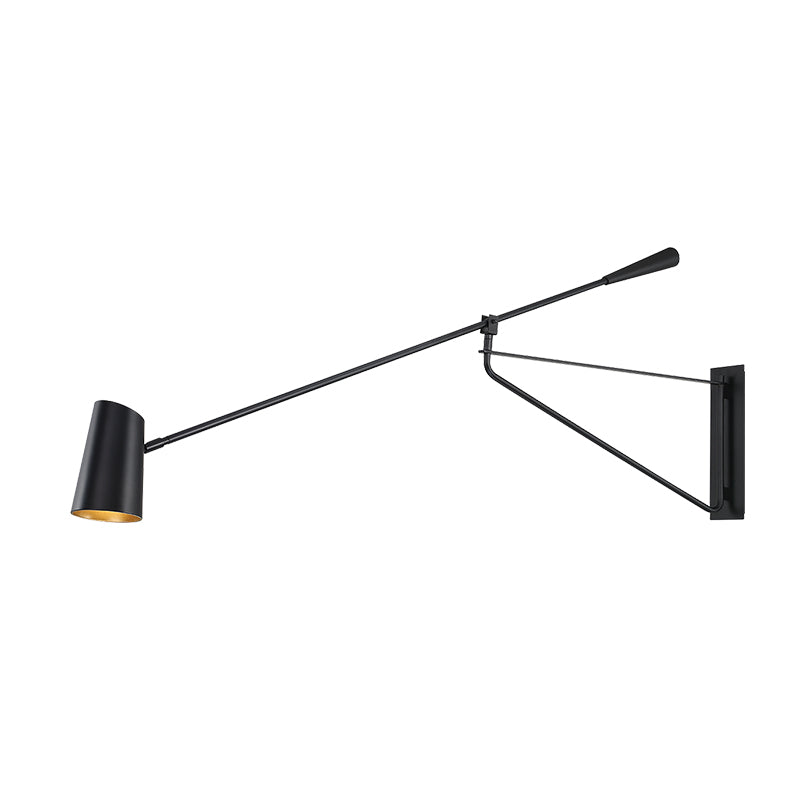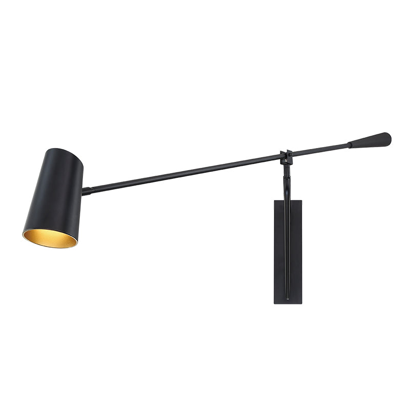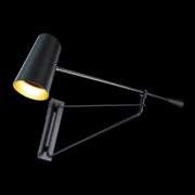 Functionality celebrating engineering. A striking silhouette that combines unique decorative elements, this large Mid-Century Modern adjustable reading light is perfect for illuminating niches in living areas and bedrooms in fine homes and boutique hotels.