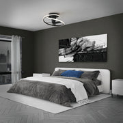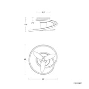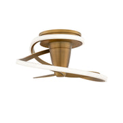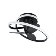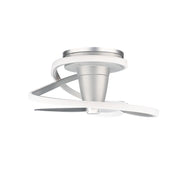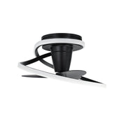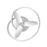 Unique and playful, the 28-inch Veloce fandelier enhances modern settings with its eye-catching form. Two smooth rings wrap around each other, creating a thought-provoking display of intertwined metal and light as they enclose a trio of ABS fan blades that provides cooling breezes to spaces below.