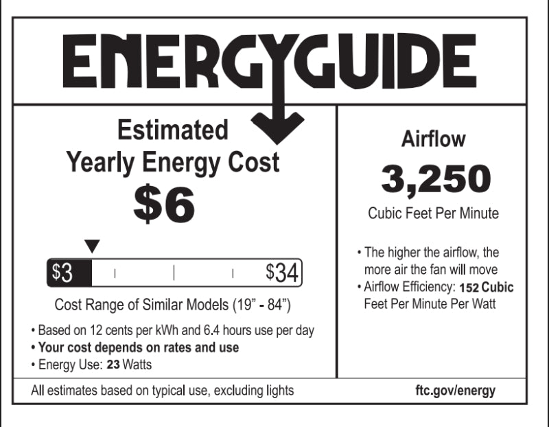 - Airflow Efficiency: 152 cubic ft per minute per watt