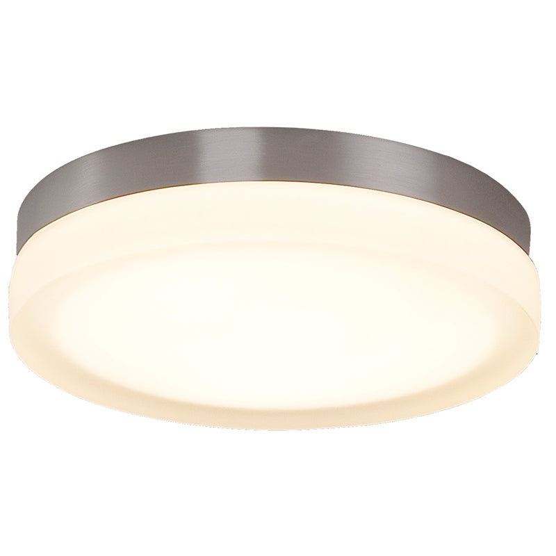This utilitarian family features a range of sizes to accommodate compact spaces like narrow hallways and stairwell landings as well as medium-sized rooms in office buildings and luxury homes. A thick, one-inch glass shade is pressed and sanded for pure whiteness, while a second insert is layered inside to extract the optimal amount of light from the high-performance LED modules.