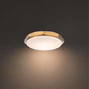 An octagonal geometric ceiling luminaire with a chiseled profile. ACLED state of the art technology projects through irresistible mouth blown etched opal glass. Integral color adjustability allows you to choose warm white, crisp white or cool light for your space.