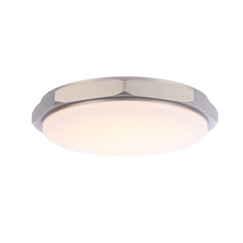 An octagonal geometric ceiling luminaire with a chiseled profile. ACLED state of the art technology projects through irresistible mouth blown etched opal glass. Integral color adjustability allows you to choose warm white, crisp white or cool light for your space.