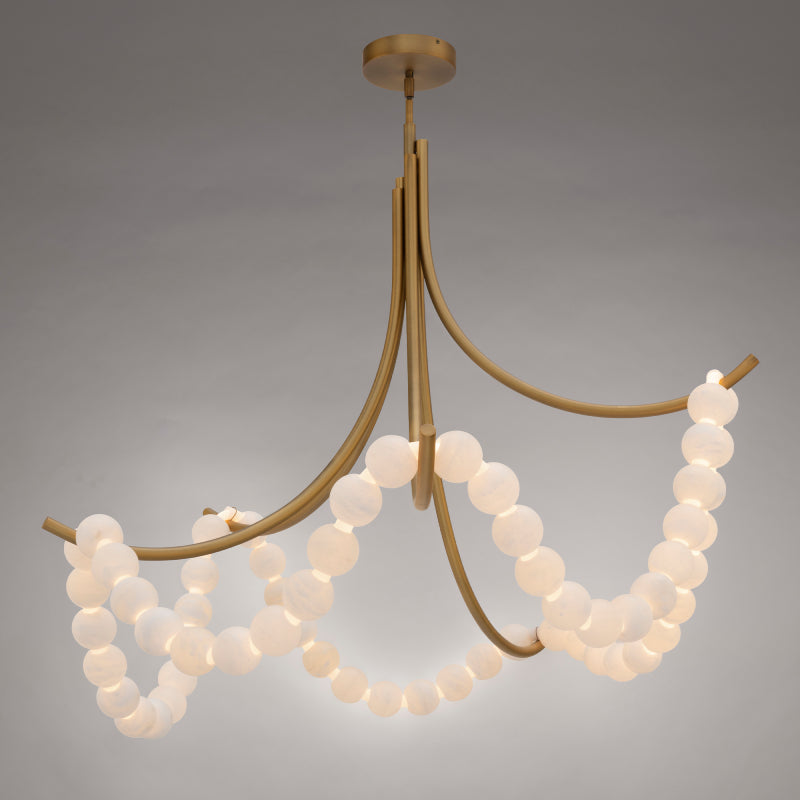 Spanish Alabaster beads are strung on an LED loop and draped over gleaming arms. Dress up your ceiling with this delightful luminaire.