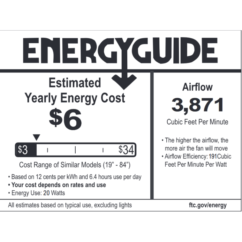 - Airflow Efficiency: 191 cubic ft per minute per watt